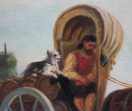 Carro, olio su compensato, XIX-XX secolo, cm 60,5x89,5, entro cornice (difetti)