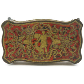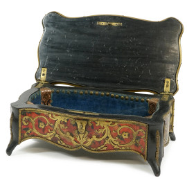 Cofanetto Napoleone III in legno decorato a boulle, XIX secolo, cm 11x28,5x16,5