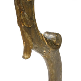Consolle in legno meccato con due gambe mosse, sec. XIX-XX, cm 150x41x65. (Difetti)