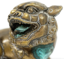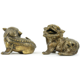 Coppia di cani Fo in bronzo, XX secolo, cm 7,5x9