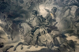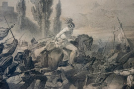 Combattimento di Calmarino, disegno di Stanislas Grimaldi (1825-1903), litografia di Charles Bour (1814-1881)