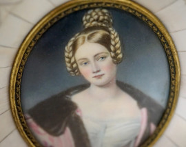 Coppia di miniature in cornice ritraenti Napoleone Bonaparte e Caroline von Holnstein (da Joseph Ksrl Stieler), sec. XIX, max. cm 14x12,5