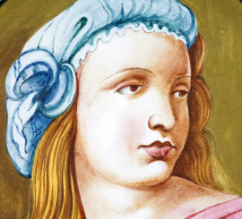 Coppia di piatti in ceramica policroma con decori figurativi in stile rinascimentale, Faenza, XX secolo, diametro cm 33 (difetti)