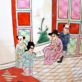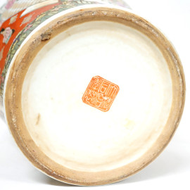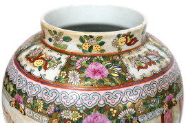 Coppia di potiche in ceramica policroma con decori vegetali e personaggi, Cina, XX secolo, altezza 50