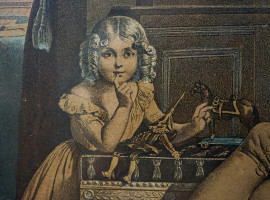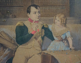 Coppia di stampe: Le Cabinet de Napoleon; Chut! Papa Dort!, XIX secolo, cm 46x31, entro cornice (difetti)