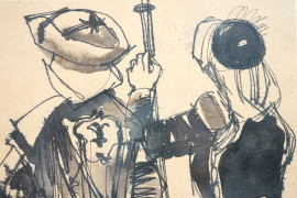 Coppia di studi per costume, tecniche diverse, XX secolo, misura max cm 23,5x10, siglati, entro cornice