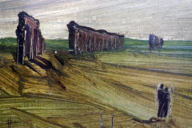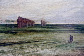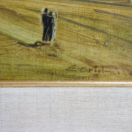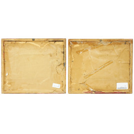 Coppia di vedute della Campagna Romana, olio su tavola, cm 12x18, firmati, entro cornice. (Difetti)