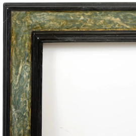 Cornice a cassetta laccata nera e verde, XX secolo, ingombro cm 104x139, battente cm 81.3x116