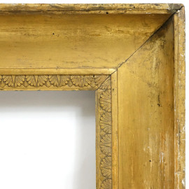 Cornice Impero in legno dorato, ingombro cm 91x66,5, battente cm 70x45,5