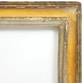 Cornice in legno intagliata e laccata, XVIII secolo, ingombro cm 87,5x79, battente cm 75,9x66,4