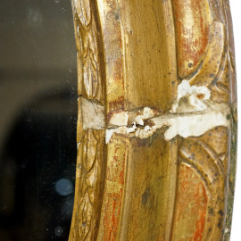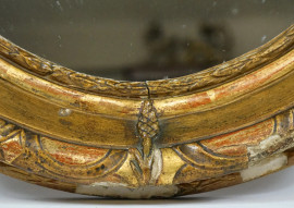 Cornice ovale in legno e gesso dorato con specchio, sec. XIX, cm 61x50,5
