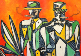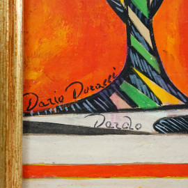Dario Doracci "Dardo", Fumatori futuristi, tempera su carta telata, cm 29x20,5, firmato in basso a sinistra, entro cornice