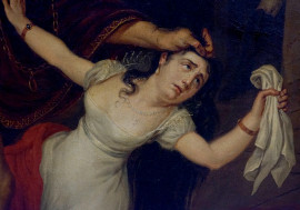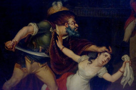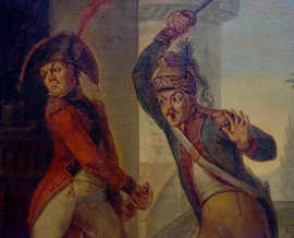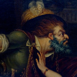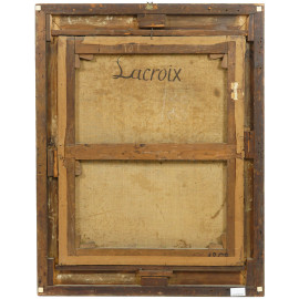 Delitto incompiuto, sec.XIX, olio su tela, cm 90x72,5, retro: iscritto "Lacroix". Entro cornice. (Difetti)