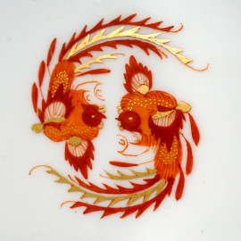 Due posaceneri in porcellana Meissen, prima metà del XX secolo, decoro raffigurante draghi, diametro cm 16,3