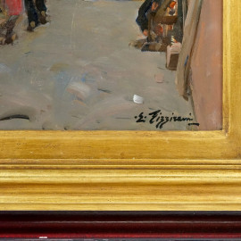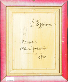 Edoardo Pizzirani (Genova 1915 - Pozzuoli, 2011), Pozzuoli. Case dei pescatori, olio su compensato, firmato in basso a destra, sul retro firmato, titolato e datato 1975, cm 39,5x29,5, entro cornice