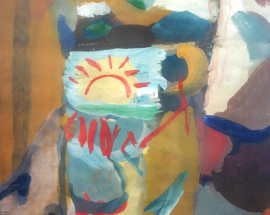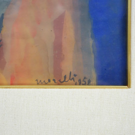 Enzo Morelli (Bagnacavallo 1896 – Bogliaco del Garda 1976), Natura morta con bottiglia, tempera su carta, firmato e datato '1959' in basso a destra, cm 48.3x35.9, entro cornice. La carta si presenta lievemente ondulata.