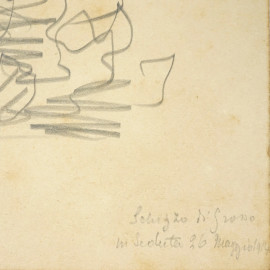 Esterno di villa, matita su carta, firmato e datato 26 Maggio 1914, cm 21x31