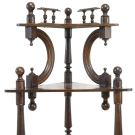 Étagère in noce a cinque ripiani, inizio sec. XX, cm 143x50,5x25,5. (Difetti)