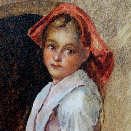 Fanciulla, olio su tavola, cm 20x10,5, firmato, entro cornice. (Difetti)