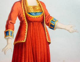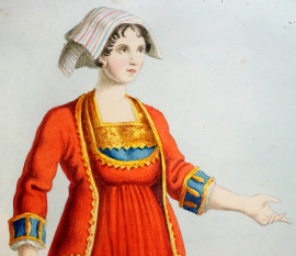 Figura femminile in costume tradizionale, sec. XIX, acquerello su carta, cm 16,5x12, entro cornice