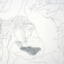 Figure, litografia, firmato in basso a destra, p.d., cm 50,5x65, entro cornice