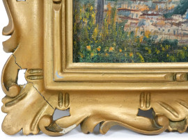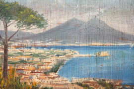 Golfo di Napoli, olio su tavola, cm 18x23, firmato, entro cornice. (Difetti)