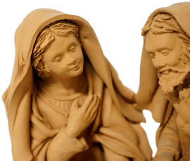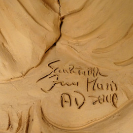 Gruppo in terracotta rappresentante la Sacra Famiglia con due angeli, firmato, sec. XX, cm 24x24 circa (difetti e rotture)