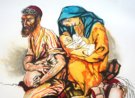 Renato Guttuso, Fuga in Egitto, litografia (107/120), cm 69,5x77 (incluso passepartout), entro cornice