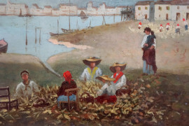 La raccolta, olio su zinco, fine XIX secolo, cm 19x32, entro cornice (difetti)