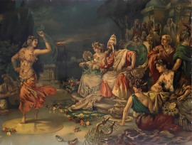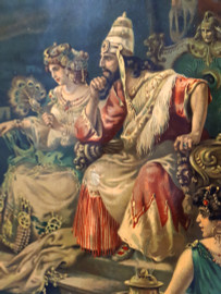Lotto composto da due antiche cromolitografie su carta, una delle quali applicata su faesite, rappresentanti eleganti scene di genere, ciascuna cm 50x65