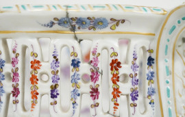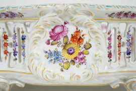 Lotto composto da due centrotavola in porcellana policroma, sec. XIX-XX, misura max cm 11,5x42x23,5 (difetti)