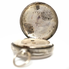 Lotto composto da due orologi da tasca: a) argento 935, fine sec. XIX; b) argento 800 decorato a smalto, con spilla a foggia di fiocco, sec. XX. Misura max. cm 4,5x4(Difetti e meccanismi da revisionare)