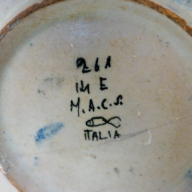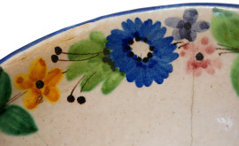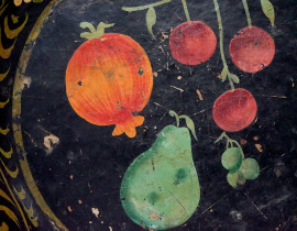 Lotto composto da un centrotavola in papier mâché con decori vegetali su fondo nero e un centrotavola in ceramica, M.A.C.S, Vietri, XX secolo, misura max cm 11x31,5 (difetti)