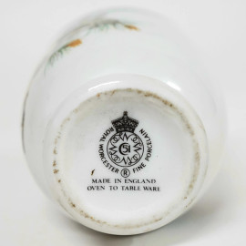 Lotto composto da un cuoci uovo in porcellana con coperchio in metallo e tre sale e pepe in porcellana a foggia di volatili, misura max cm 9.5x5.5