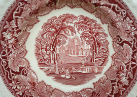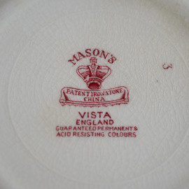 Lotto composto da un servizio da tavola in ceramica "Mason's Vista England. Patent Ironstone China" (una tazzina e quattro piattini da caffè, una legumiera, un piatto da portata ovale e ventuno piatti piani di varie grandezze), da un servizio da caffè in ceramica decorato a motivi floreali (sei tazzine [..]