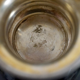 Lotto di due coppette in marmo policromo e argento, Artigiani della Ditta I Grilli, XX secolo, cm 5,5x7,5