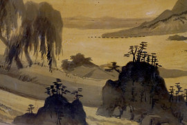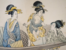 Lotto di due paralumi in carta dipinta, misura max cm 140x36,5 circa