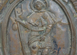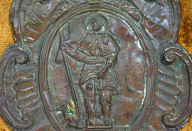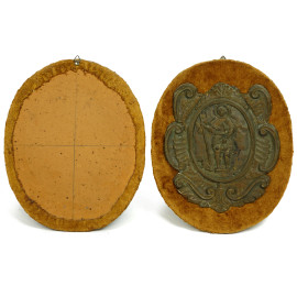 Lotto di due placche in bronzo rappresentanti San Rocco e il cane, sec. XIX, cm 15,5x14