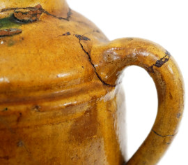Lotto di due sculture antropomorfe in maiolica dipinta, XX secolo, misura max cm 37 (difetti)