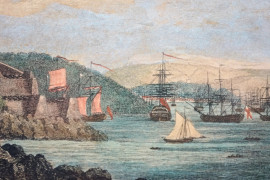 Lotto di due stampe del XVIII e del XIX secolo, misura max cm 21x87 circa, entro cornice