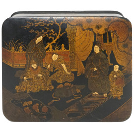 Lotto di quattro scatole in papier maché laccate con decori, Cina, XIX-XX, max. cm 7x19x16,5