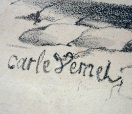 Lotto di quattro stampe rappresentanti scene popolari, da Carle Vernet (1758-1836) e Martinet et Gihaut, misure comprese passpartout cm 44x32, entro cornice