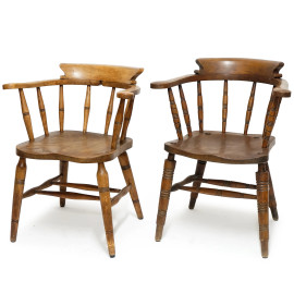 Lotto di sei sedie in rovere Old America, di cui due a dondolo, XIX-XX secolo, misura max cm 107x47x47