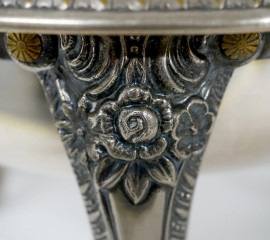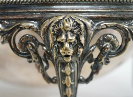 Lotto di tre oggetti in metallo argentato, misura max cm 45x27