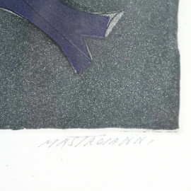Senza titolo, litografia a colori, firmato in basso a destra Mastroianni, misure comprese passepartout cm 47x68, entro cornice