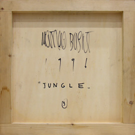 Matteo Basilè (1974), Jungle 1, 1996, elaborazione fotografica su carta applicata su pannello in legno, cm 50x50, firma anno e titolo al retro