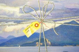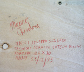 Mauro Chiodoni (XX secolo), Strappo sul lago, acrilico su tela di lino, cm 20x30, entro cornice