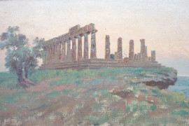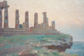 Tempio di Selinunte, olio su tela, firmato in basso a destra M. Mirabella, cm 26,5x52,2, entro cornice