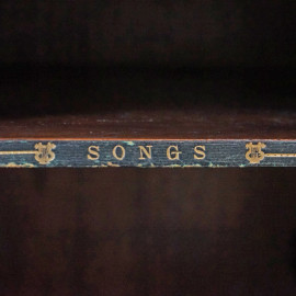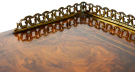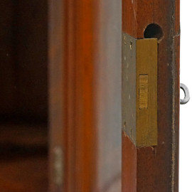 Mobile porta dischi in legno impiallacciato e intarsiato, a due ante con doppio ripiano interno, piano con alzata rettangolare, inizio sec. XX, cm 106x69,5x43. (Difetti)