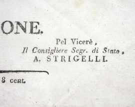 Napoleone per la grazia di Dio e per le Costituzioni, Imperatore dei Francesi, Re d'Italia, Protettore della confederazione del reno e Mediatore della Confederazione Svizzera: Eugenio Napoleone, 1811, cm 44x26, entro cornice (difetti)